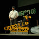 First up was their concept of the serial processing of a CPU. They devised a robot, which they dubbed "Leonardo," that rapid-fired paintballs at a target, creating the image of a smiley face. It was a pretty impressive sight, at least until the audience saw what came next. Leonardo did a good job, but wasn't up the challenge of creating a more complex work of art.