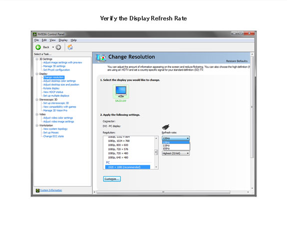 refresh rate, make sure to select a refresh rate of 100Hz or higher.