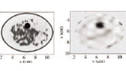 Cross-section of an actual breast interior of a numerical phantom (left) and the reconstructed image using the UW-Madison microwave inverse scattering technique (right) computed using Acceleware hardware. The darkest region represents a tumor. |