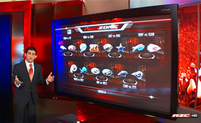 DIRECTV’s RED ZONE CHANNEL®, a service for NFL SUNDAY TICKET subscribers, has done just this with its use of innovative interactive broadcast graphics. DIRECTV is the first network to offer football fans a total-immersion, host-directed real-time ride through eight simultaneous games, delivering the fast pace and comprehensive coverage viewers crave. Taking advantage of a massive 103-inch touchscreen monitor and a Hego AKI GS2 multi-touch graphics server, powered by the NVIDIA® Quadro® Digital Video Pipeline, DIRECTV brings real-time football action and stats directly to its viewers.