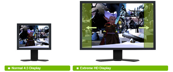 software that support XHD’s stunning visual clarity. XHD will immerse you in games like never before, letting you see more of the exciting gaming action. And for users that want more space for photo or video editing, XHD lets you spread your work over the entire desktop providing over 20% more desktop space than normal 4:3 aspect ratio monitors.