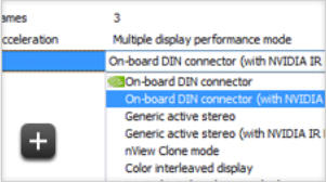 For Quadro boards with a stereo connector, use the 3-pin mini-din to 1/8” stereo cable that comes with the 3D Vision kit to connect the graphics board to the emitter. This cable provides a direct connection from the GPU to the glasses to make sure they are switching at the correct time.