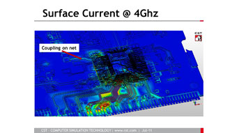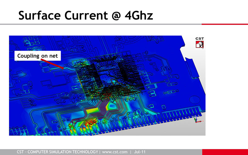 ![]() GPU accelerated full wave EM simulation to analyze crosstalk on the opposite side of the package (Source: Martin Timm, CST, Germany) |