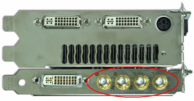 关于其他 NVIDIA Quadro FX SDI 卡的说明,请参见 SDI 连接 - 其他 NVIDIA Quadro FX SDI 卡。