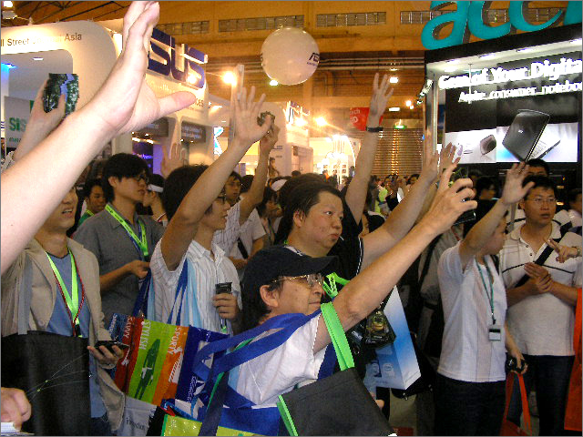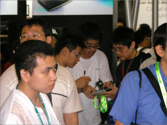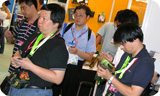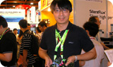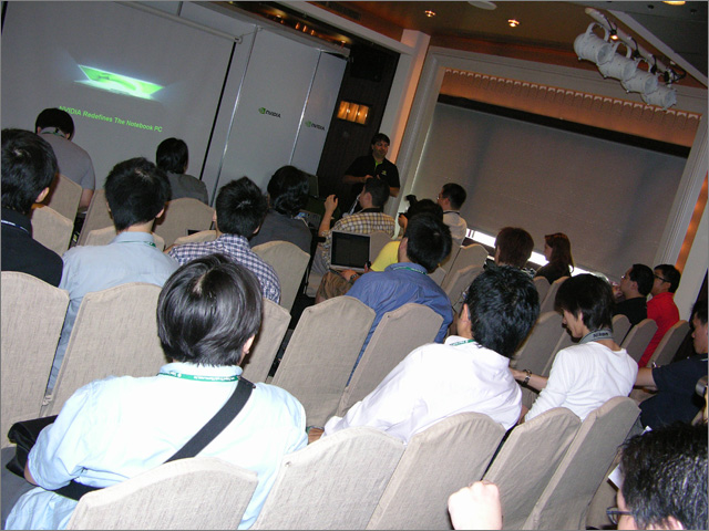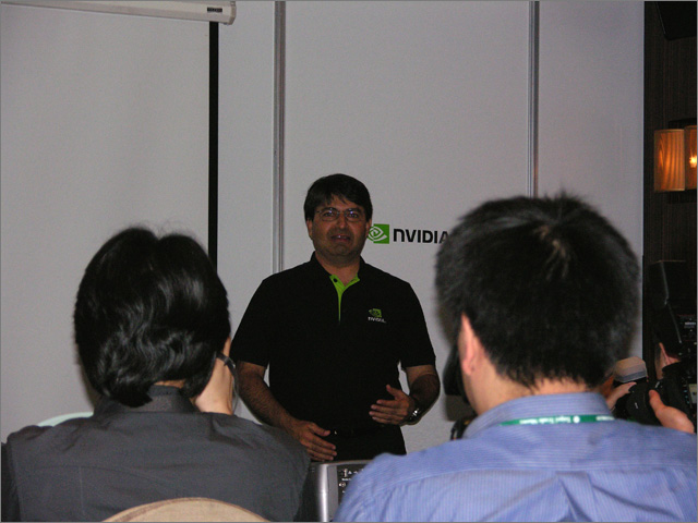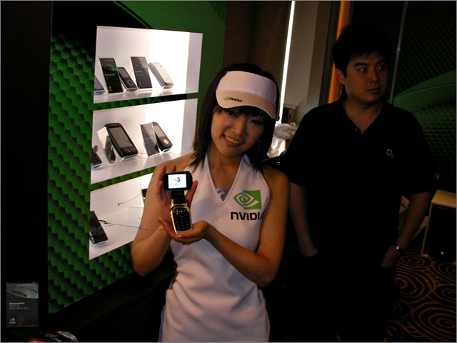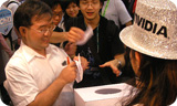 Ravi Kaushik captivates the media with the NVIDIA mobile GPU.   All eyes on Ravi   “I’ve got to take a shot of this.”   Race with NVIDIA at the Chaintech booth