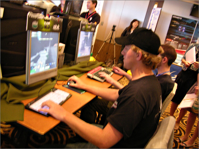 Jonathan “Fatal1ty” Wendel competing on an NVIDIA SLI system   Firing Squad competition in progress   Leadktek Quadro FX 5600 is the Best Choice   This security doesn’t want to miss out of the action