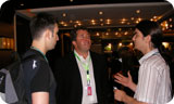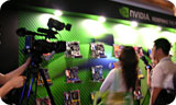 What a crowd!   Talking technology, NVIDIA’s that is!   Lights, camera, action!   Rob Csongor chatting with press members.