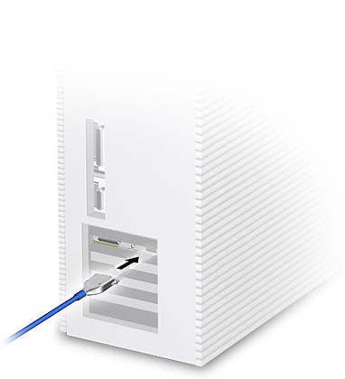 Reconnect any devices that you detached during installation and then connect the monitor cable to the new card.