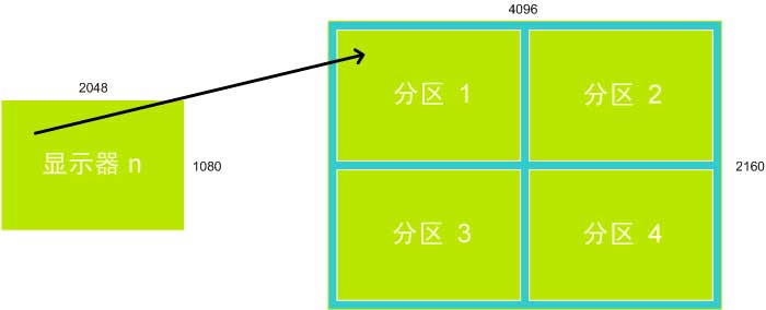 每台显示器界定更大虚拟画面上特定的统一区域。