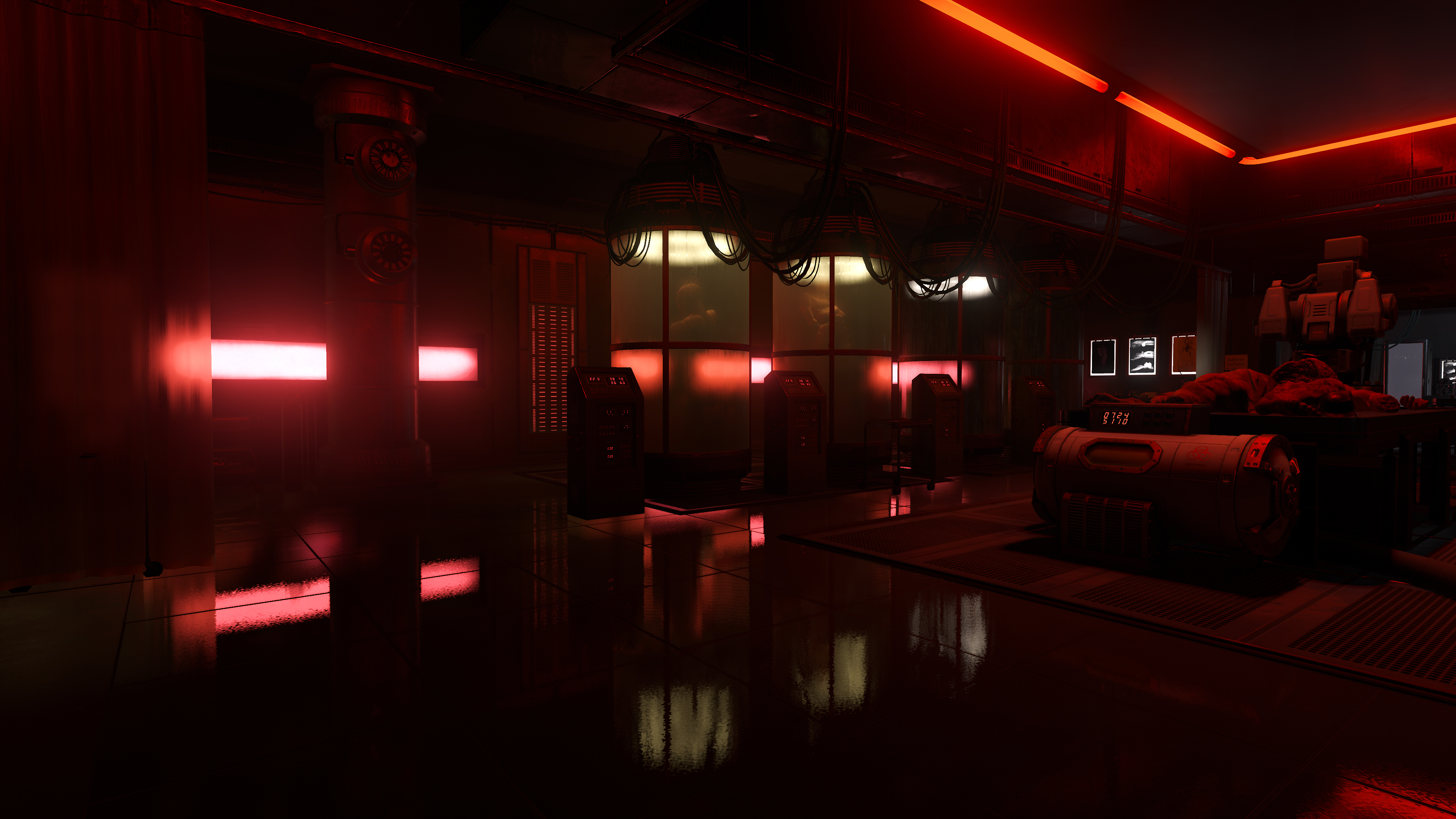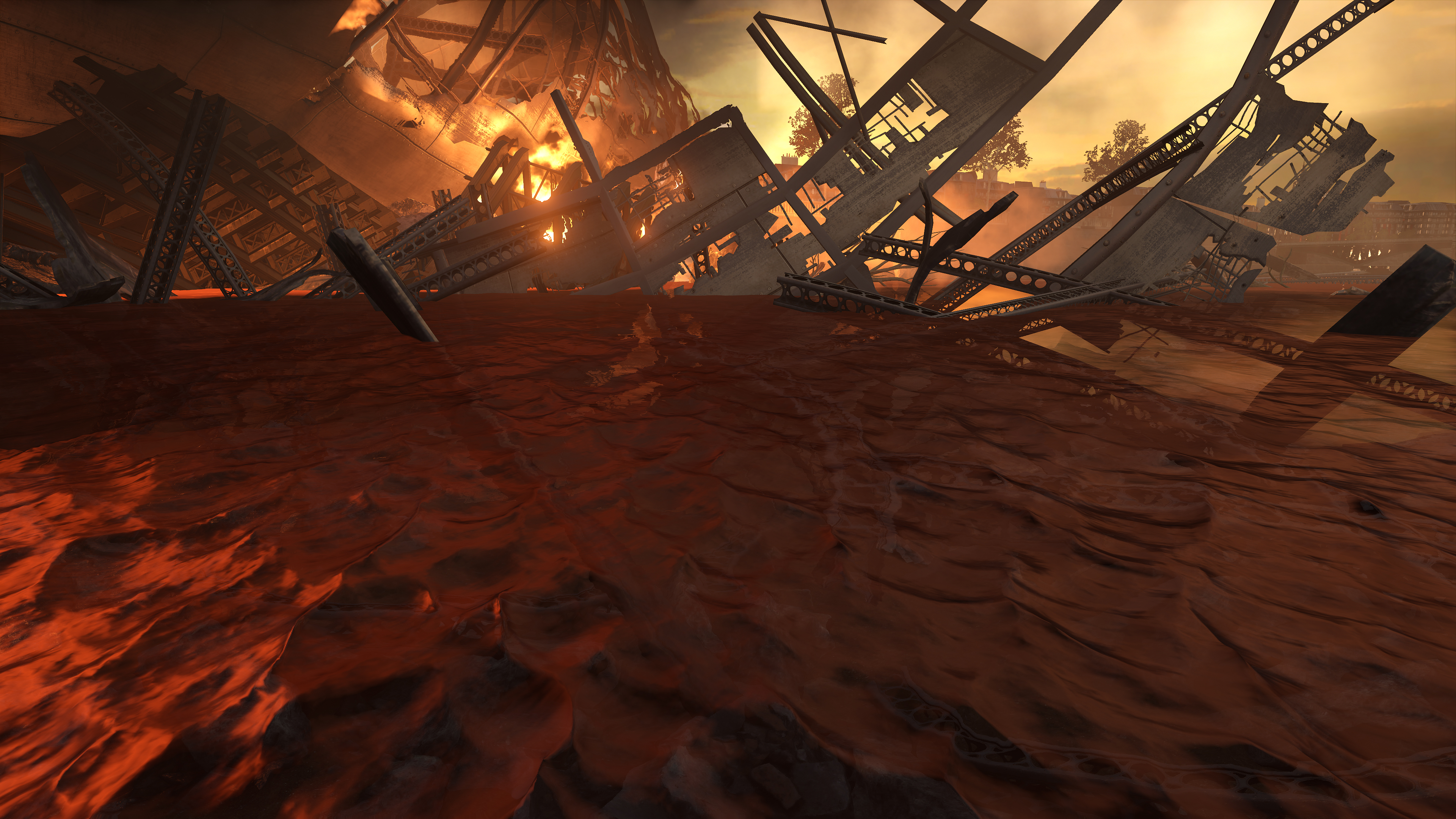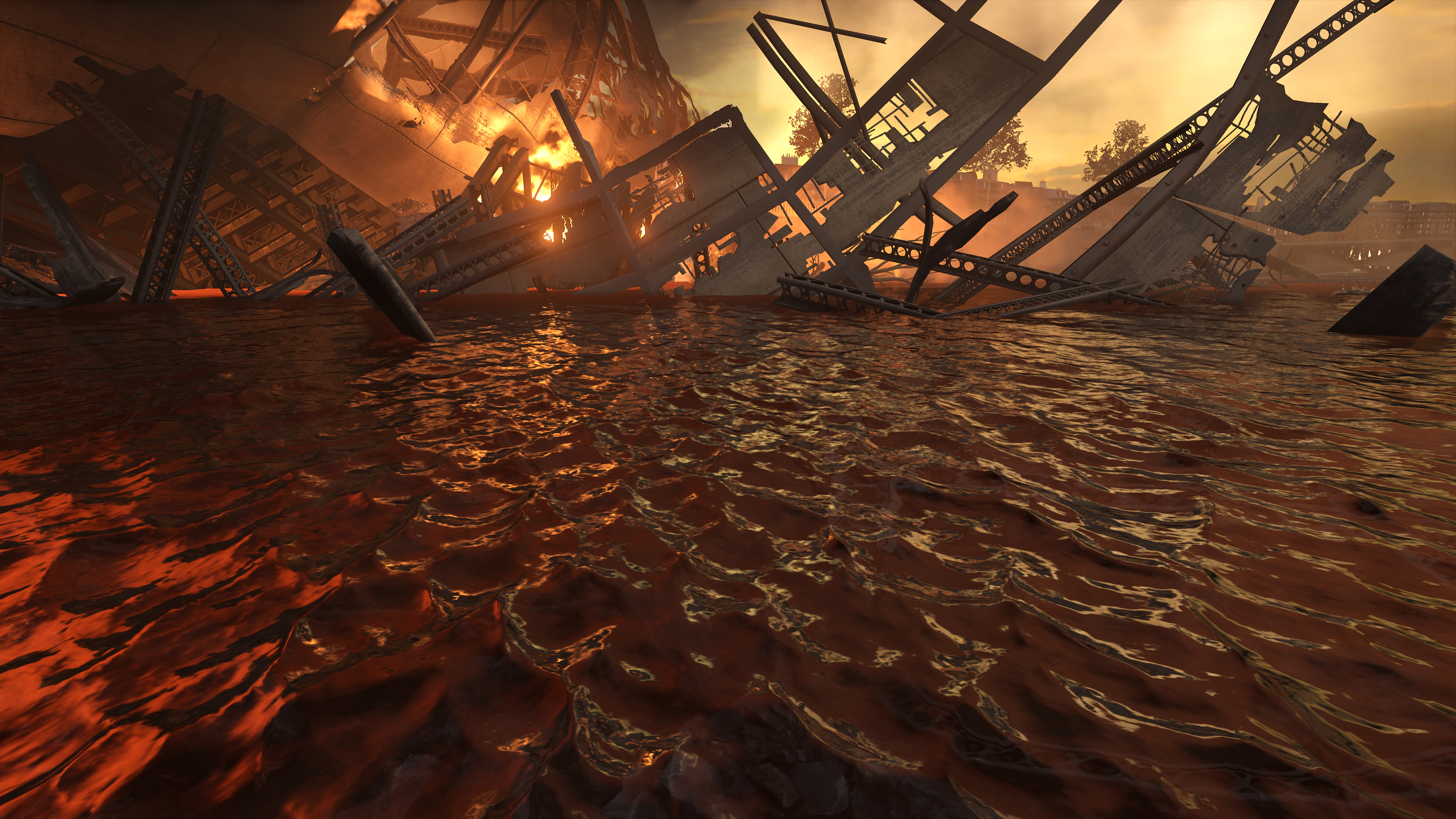 Puddles, select metal surfaces, glossy floors, and other material types feature Screen Space Reflections, showing real-time reflections of surrounding action and game elements: