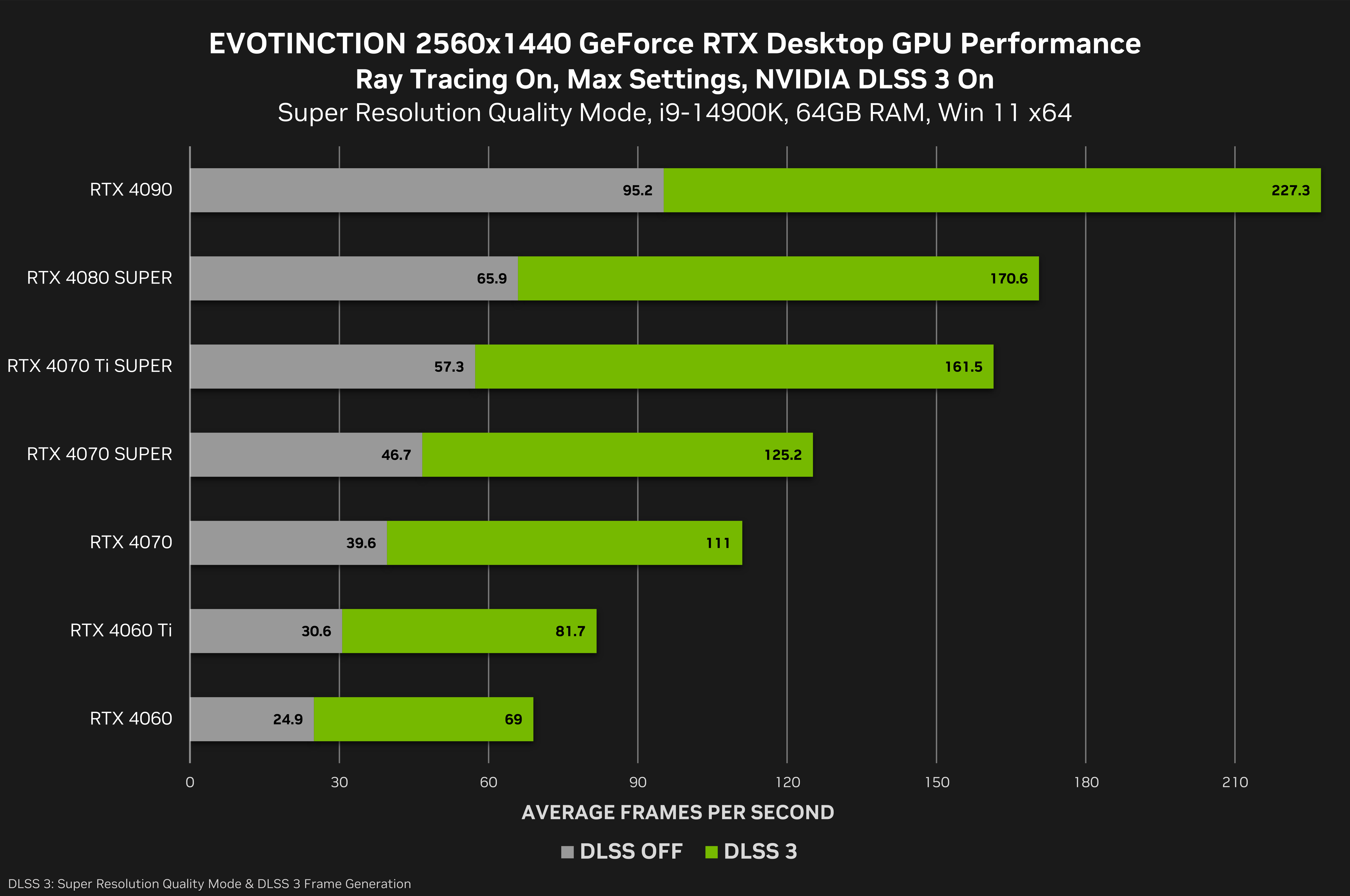 On GeForce RTX 40 Series GPUs, DLSS Super Resolution and Frame Generation multiply frame rates by 3.9X on average at 4K, with all settings maxed out, and ray tracing enabled, giving everyone with a GeForce RTX 4070 and faster GPU the definitive experience: