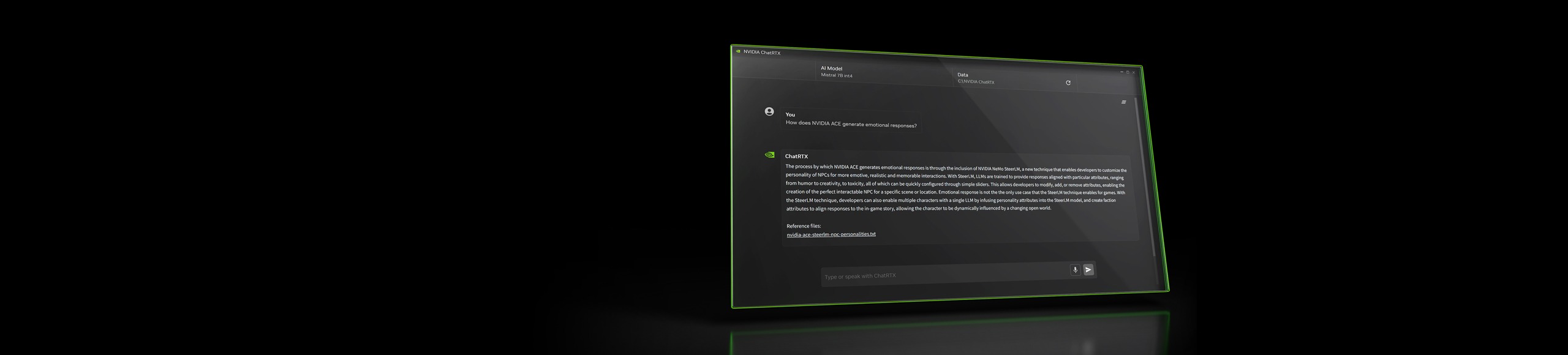 ChatRTX features an automatic speech recognition system that uses AI to process spoken language and provide text responses with support for multiple languages. Simply click the microphone icon and talk to ChatRTX to get started.