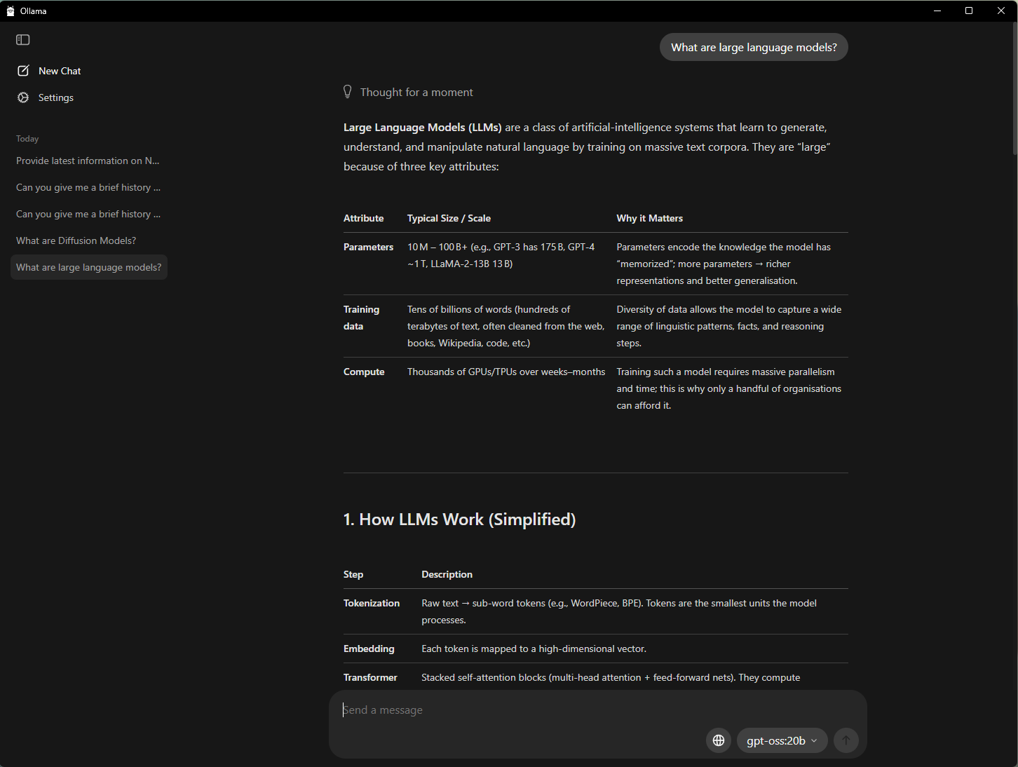 One of the easiest ways to get started with AI on a PC is with Ollama, an open-source tool that provides a simple interface for running and interacting with LLMs. It supports the ability to drag and drop PDFs into prompts, conversational chat and multimodal understanding workflows that include text and images.