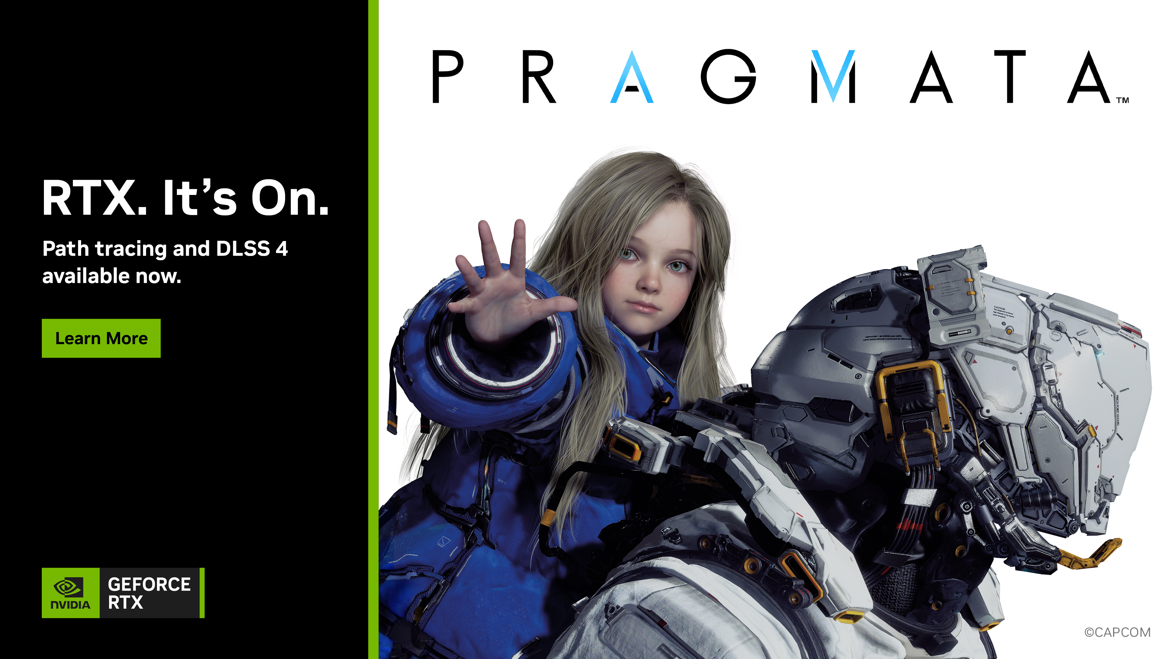 PRAGMATA and GeForce RTX 50 Series bundle buyers can play the critically acclaimed game now. Experience Capcom’s latest smash hit at its absolute best by playing on a GeForce RTX 50 Series GPU, with frame rates multiplied by DLSS Multi Frame Generation, PC latency reduced by Reflex, path-traced performance accelerated by GeForce RTX Ray Tracing Cores, and path-traced image quality enhanced by DLSS Ray Reconstruction.