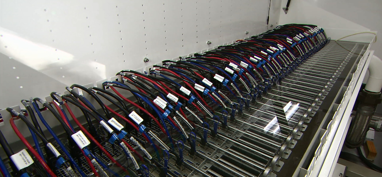 TSUBAME-KFCはTSUBAME2.0の後継となるTSUBAME3.0及びそれ以降のためのテストベッドシステムとして、同センターが推進する文部科学省概算要求「スパコン・クラウド情報基盤におけるウルトラグリーン化技術」プロジェクトによって設計・開発されたものです。同プロジェクトではスーパーコンピュータの消費電力とそれに係る冷却電力の双方の削減を目標としており、TSUBAME-KFCでは計算ノードを循環する油性冷却溶媒液の中に計算機システムを浸して冷却する油浸冷却技術及び冷却塔による大気冷却の組み合わせによって非常に少ない消費電力で冷却できるように設計しています。