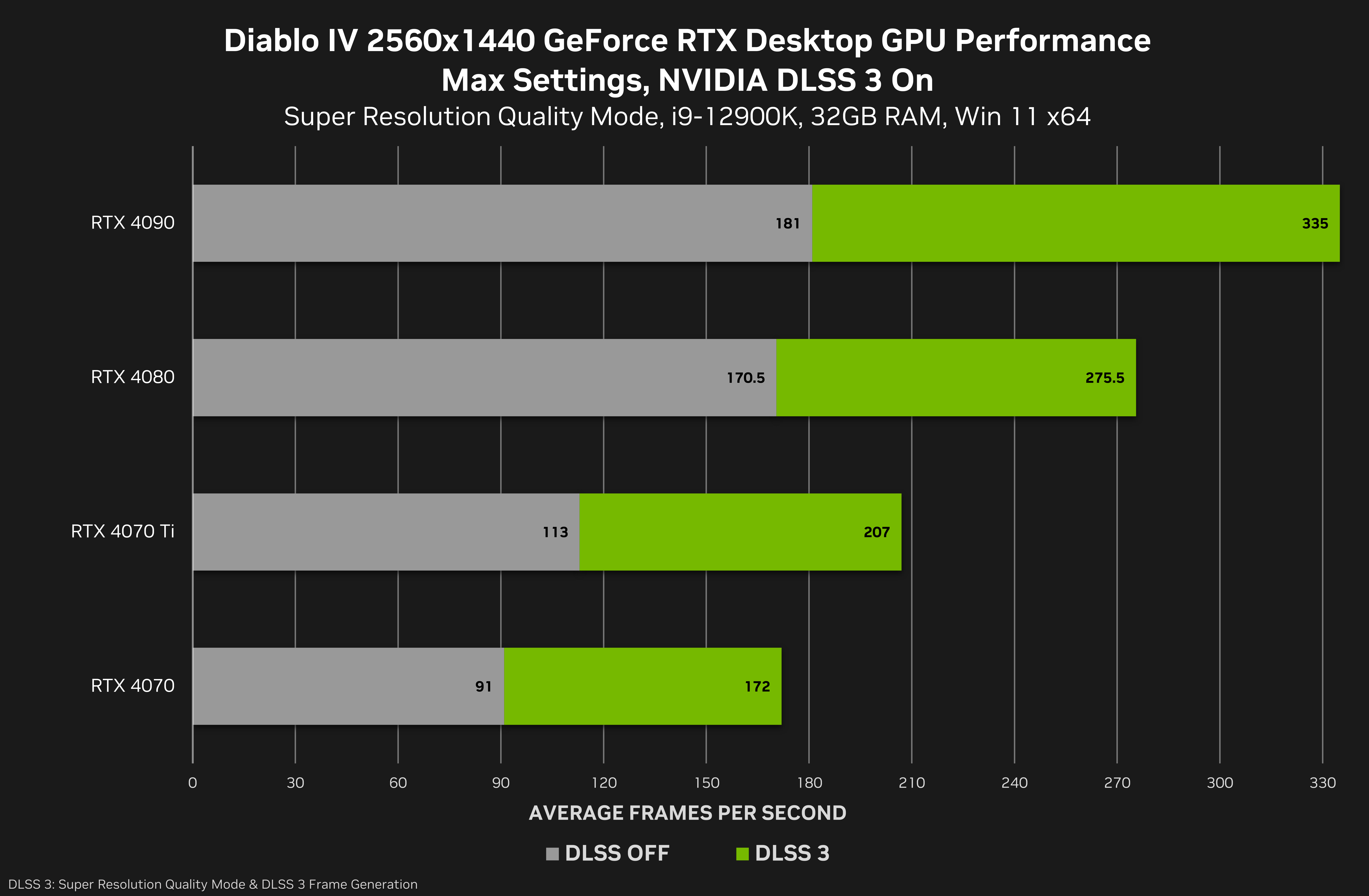 Os jogadores com GeForce terão a experiência de PC definitiva nesta nova temporada de Diablo IV - os jogadores com uma GeForce RTX Série 40 poderão maximizar as taxas de quadros com NVIDIA DLSS 3 Frame Generation, e outros jogadores com GeForce RTX das outras Séries poderão acelerar o desempenho com a tecnologia DLSS 2 Super Resolution.